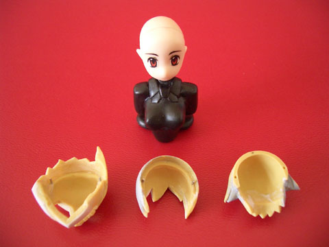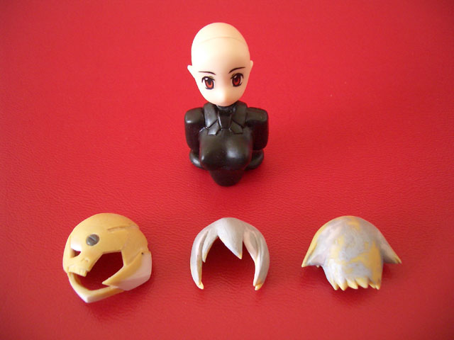 肌色神姫の頭部とエポパテ製の髪の毛パーツ。