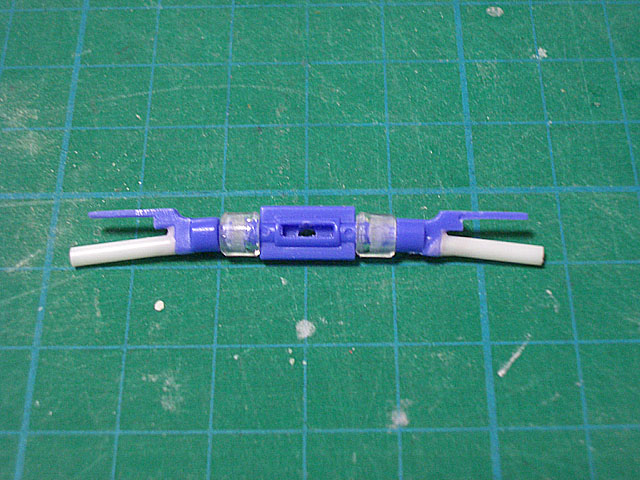 フレームパーツや間接軸(青)を削って加工し、それぞれを