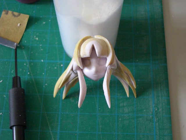 × [PR]上記の広告は3ヶ月以上新規記事投稿のないブログに表示されています。新しい記事を書く事で広告が消えます。 まだ大まかな形を出して大体のイメージを確認しているという段階なんですが、とりあえずアップしておきます。 作りながら気になっているのは、前髪が顔から離れすぎているかなあという所。 この他の写真も以下にアップしていきますが、斜めから見るとそれが特に顕著なのがわかるかと思います。 # 正面から見ても、これだけ影が落ちているわけで……。 前髪の裏側にパテを盛って、表側からガシガシ削って、前髪と顔の距離を近づけるのが良いのかなあ。 立体をやるのは久しぶりのなのでなかなか手間取っています。 製作も1日30分~1時間くらい、しかも毎日やるというわけではないので、作業再開するたびに色々リセットされてます(^^;)